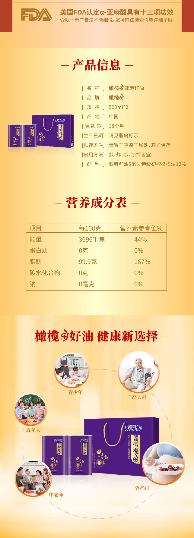 贝蒂斯-橄榄+亚麻籽500ML双支礼盒