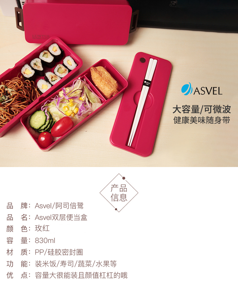 Asvel阿司倍鹭 830ml双层饭盒