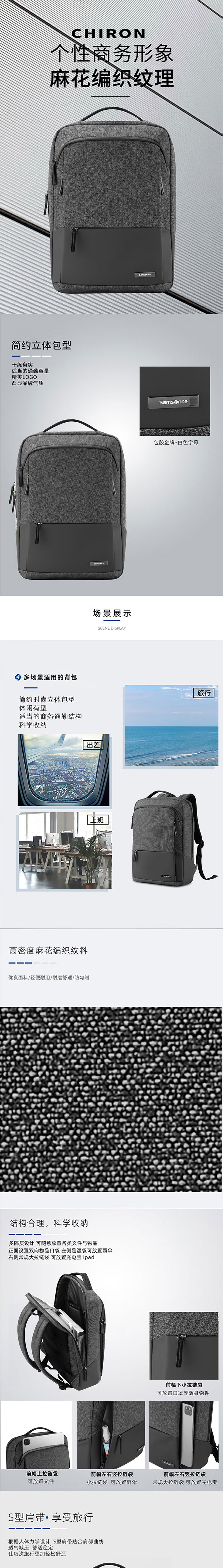 新秀丽(Samsonite)时尚双肩包休闲电脑书包 NU4*19001 深灰色
