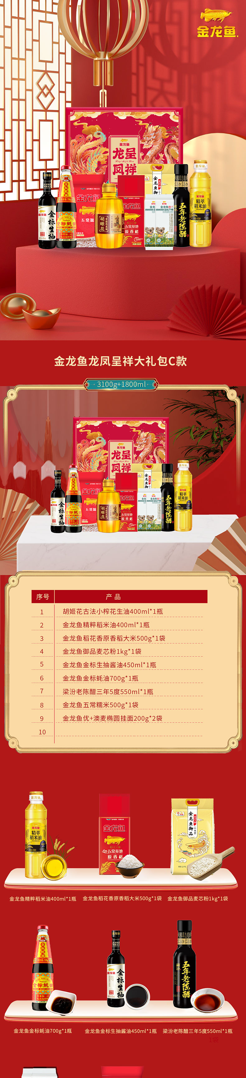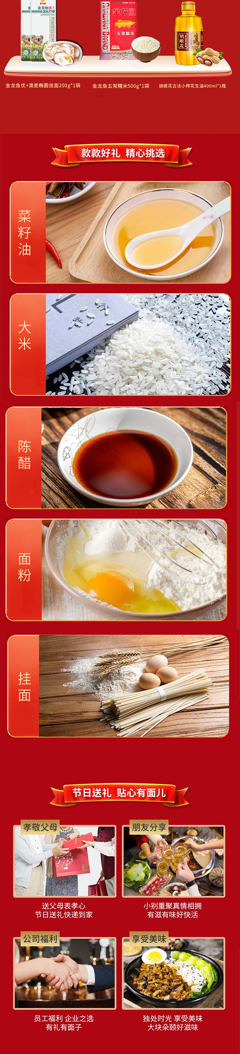 丰享五芳礼盒1700g+金龙鱼龙凤呈祥大礼包C款+三元福萃枣夹核桃礼盒A款1000g