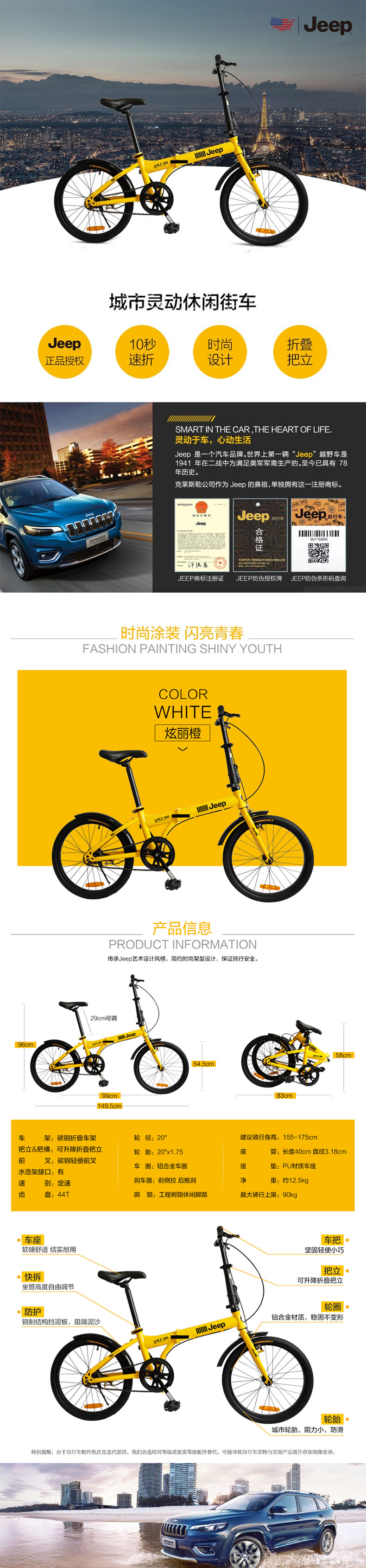 Jeep美国吉普 20寸 单速折叠休闲自行车