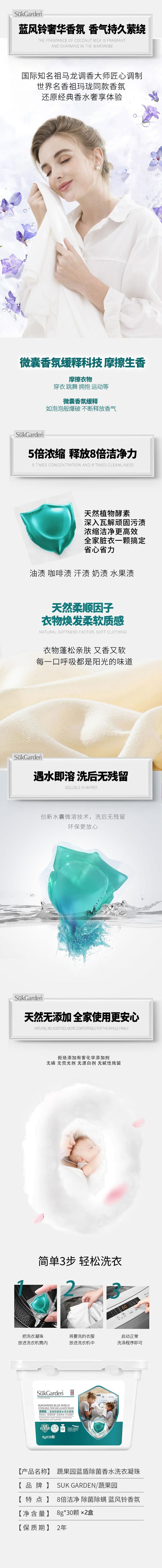 SukGarden蔬果园 蓝盾蓝风铃香水洗衣凝珠(8g*30颗)*2盒