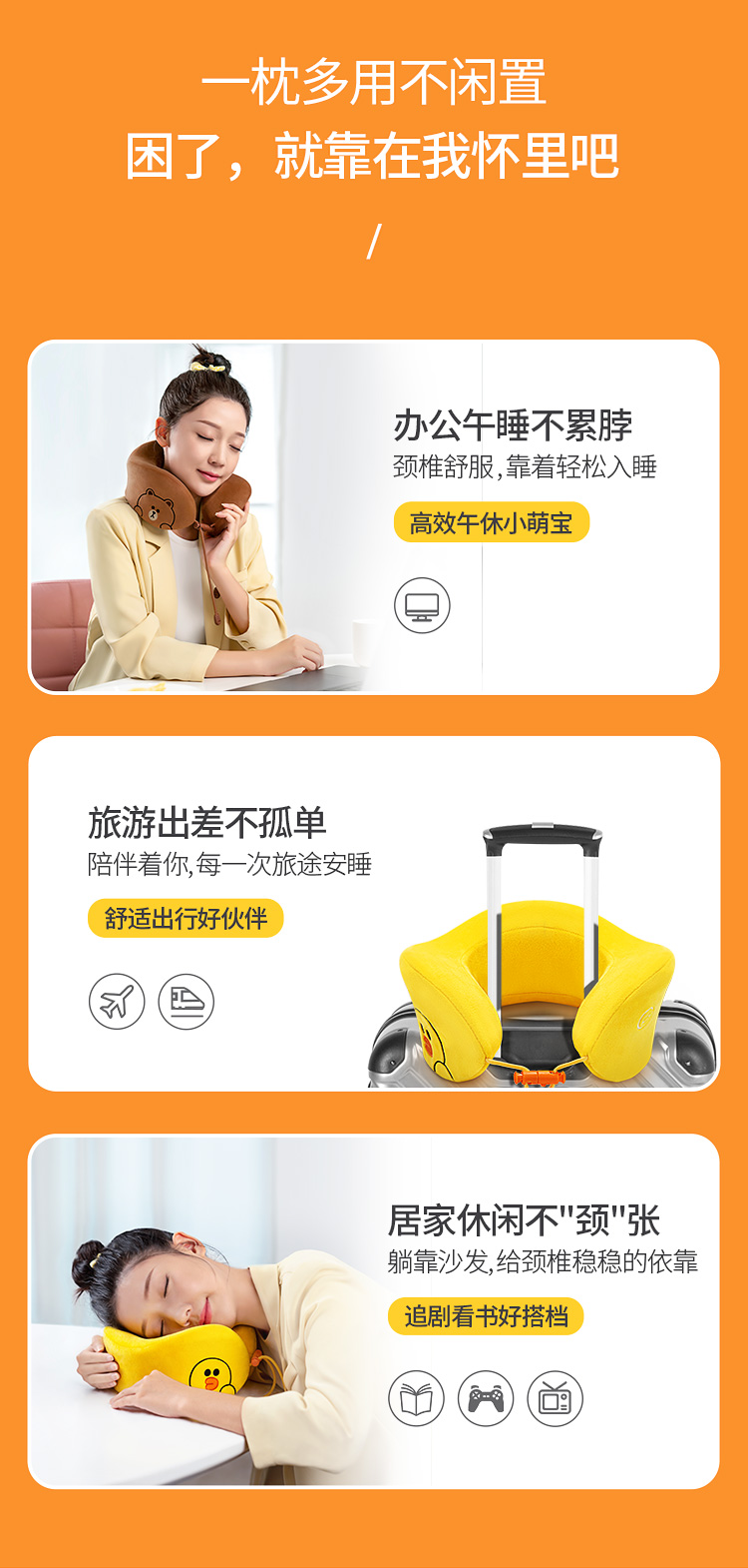 奥佳华LINE FRIENDS联名U型午休枕(单个电动型)